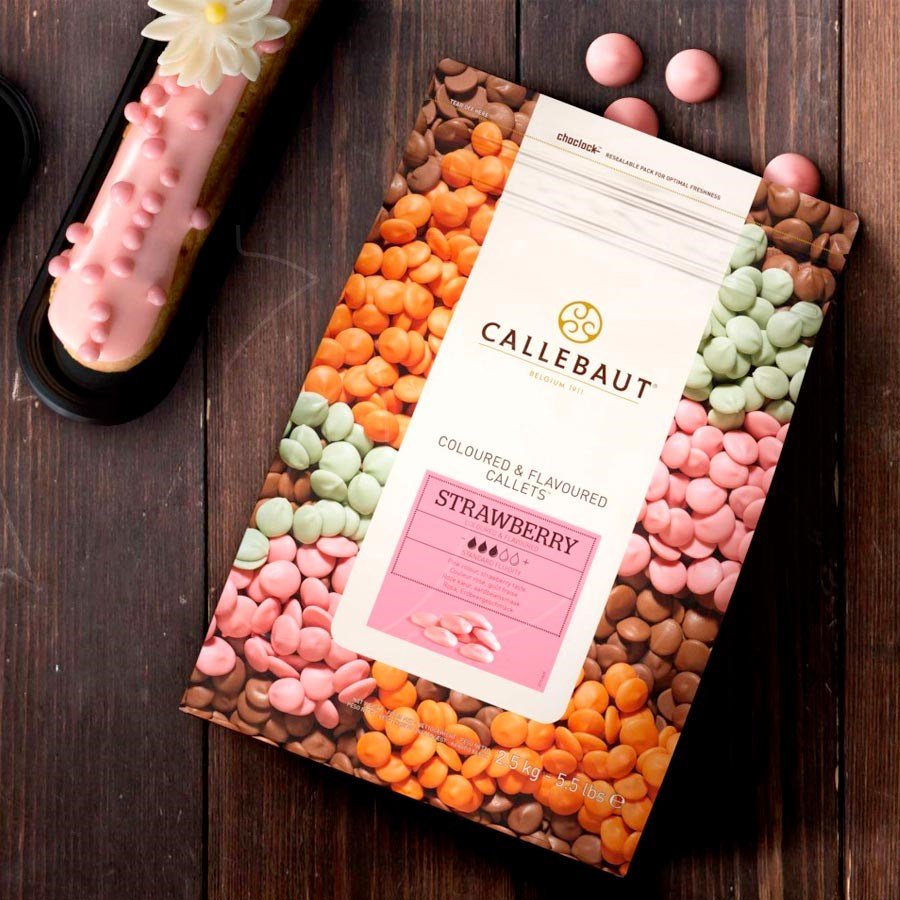 Используйте для ваших десертов розовый клубничный шоколад CALLEBAUT Бельгийского производства.