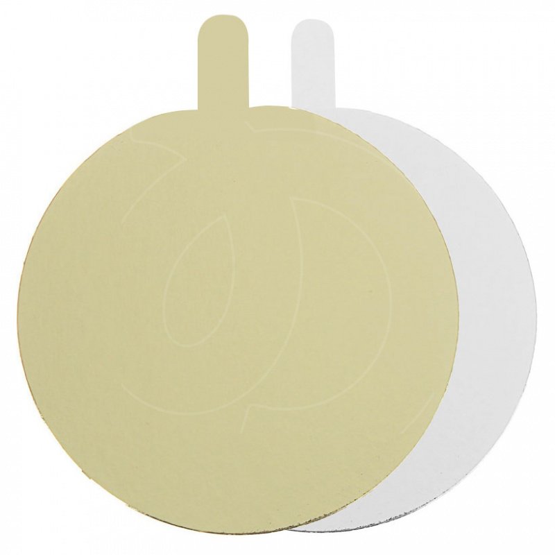 Толстая картонная подложка светлого золотого цвета с одной стороны и белого с другой. Используется как многоразовый поднос для тортов и пирожных.