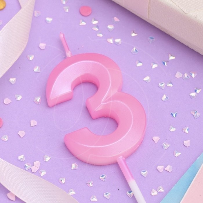 Доставка Свеча декоративная Цифра "3" Грань Розовый из магазина в вашем городе: