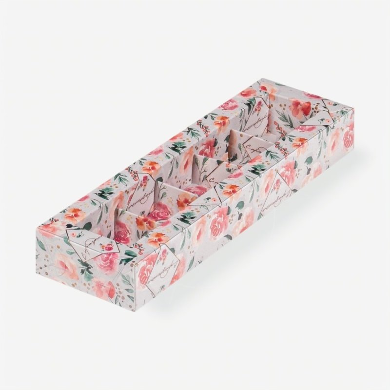 Доставка Коробка на 5 конфет с пластиковой крышкой "Розы" 23,5х7х3 см из магазина в вашем городе: